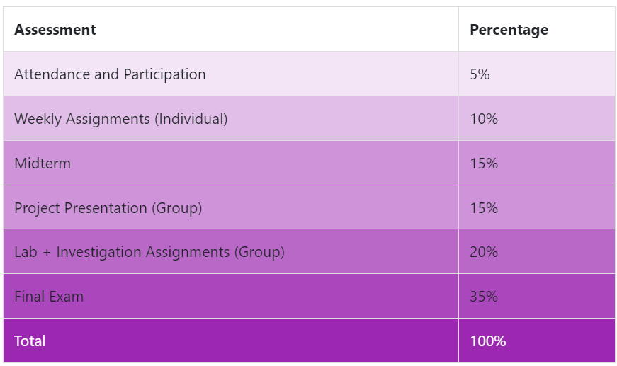 I will record attendance during every lecture, not only for grading purposes, but also to track your learning progress in this class.
